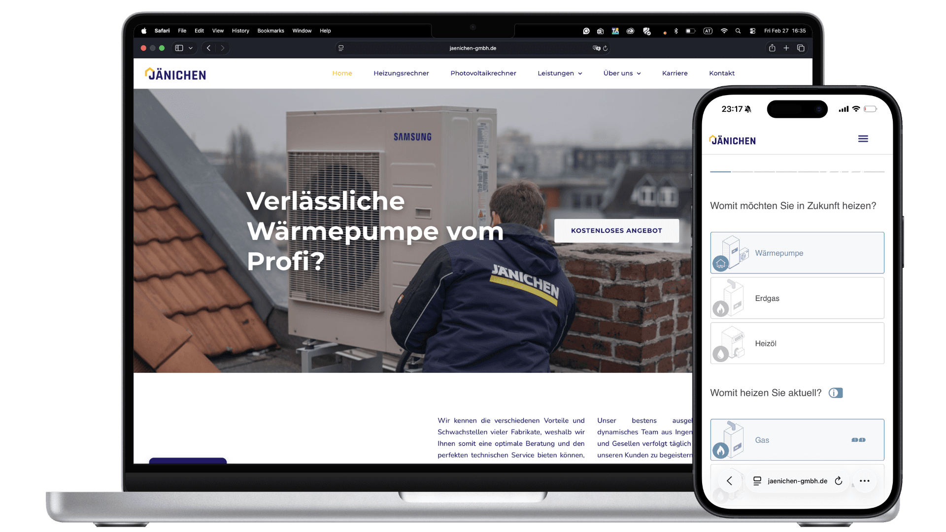 Aufbau einer modernen, suchmaschinenoptimierten Website, die automatisiert qualifizierte Anfragen generiert und Jänichen regional als Marktführer für Wärmepumpen und Energielösungen positioniert.